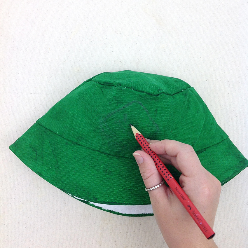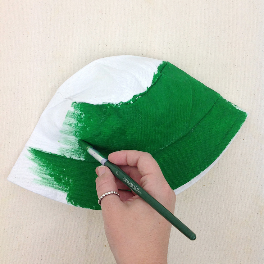 • Step 1 Use green fabric paint to coat your entire hat. Allow to dry.