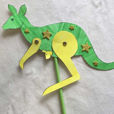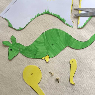 • Step 3Cut out the kangaroo body, leg and paw. Use the paper fasteners to attach the leg and paw to the body.