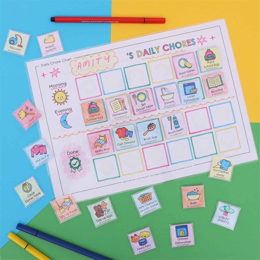 • Step 2Decorate the templates with markers or pencils. You may even like to create your own personalised chores using the blank squares provided.