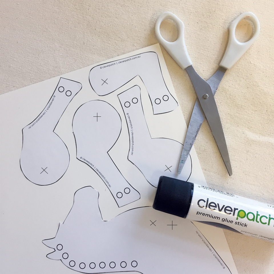 • Step 1Download and print out the template provided. Cut out your template and glue it to the cardboard for a sturdier base for decorating. Adult supervision is recommended when using scissors. Cut out your pieces.