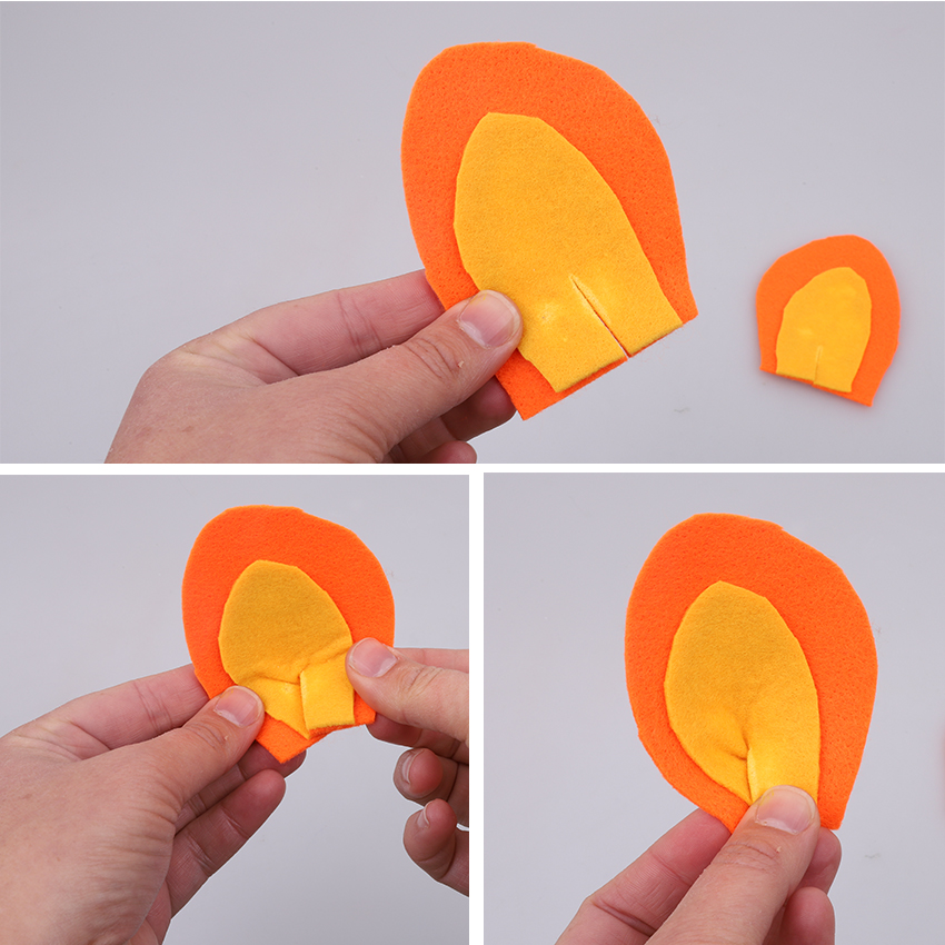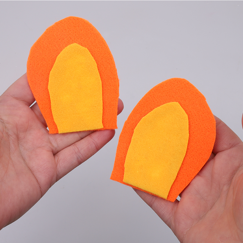 • Step 4Cut two ear-shaped pieces from a sheet of orange felt and two slightly smaller ear-shaped pieces from yellow felt. Lay the yellow pieces on top of the orange pieces and use tacky glue to stick in place. Allow to dry.