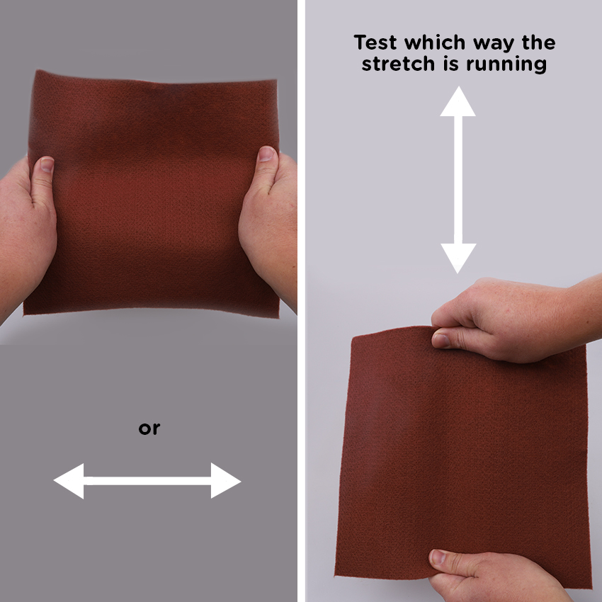 • Step 1Before you begin, you will need to work out the stretch of the felt. Hold a square of felt between your hands and then give it a gentle pull horizontally. Shift your hands to now pull the felt vertically. One of the directions will have more stretch than the other.