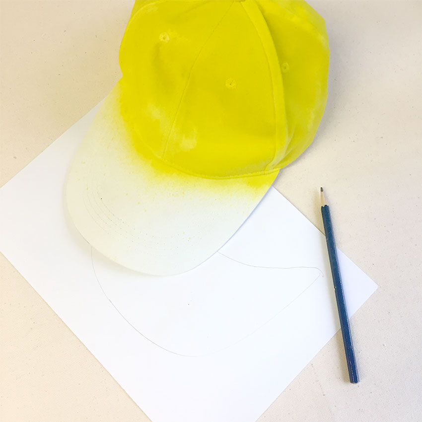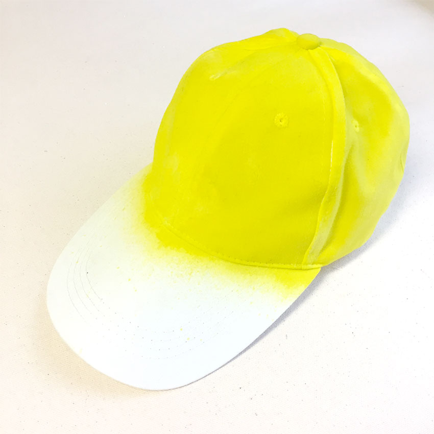 • Step 1 Before beginning, be sure to protect your work area and put down a splash mat or scrap paper first. Use the fabric paint to cover the top of the cap. It doesn’t matter if some yellow gets on the brim.