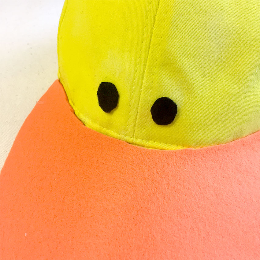 • Step 4 Add character to your duck cap by finishing with some eyes! Cut 2 small circles from black felt and attach with glue. Allow to dry. Your Duck Cap is now ready to wear!