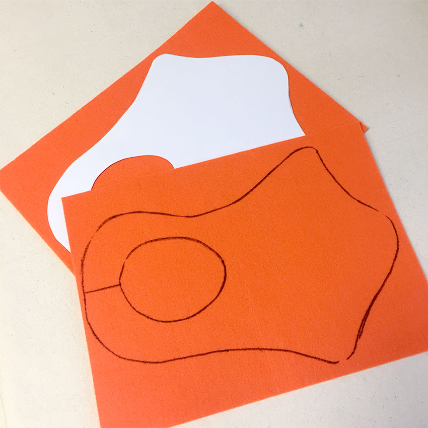 • Step 5 Create a simple duck foot template on paper, based on how big you would like your duck feet to be. Look to our design and follow a similar shape. Trace your template onto orange felt and cut the pieces out so that the end with the hole has a split as shown.