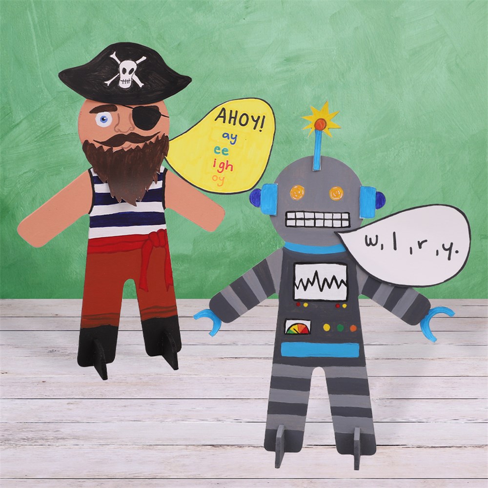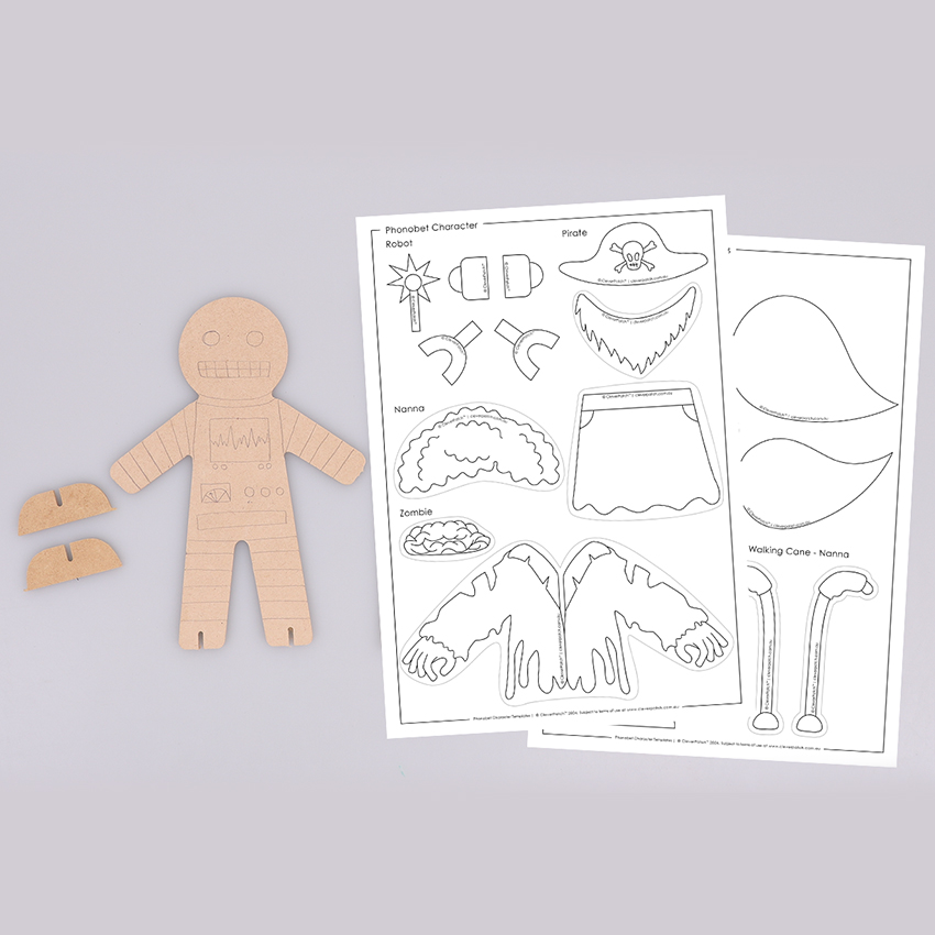 • Step 1Choose a character from the ‘Phonobet’ book or think of your own character based on the sounds they might make. Your character could use consonant sounds like a Robot using the sounds made by the letters “w, l, r, y” or a Nanna using sounds made by the letters “m, n, ng”. Your character might use vowel sounds like a Pirate that make the sounds “ay, ee, igh, oy” or a Zombie using sounds like “ar, or, er”.