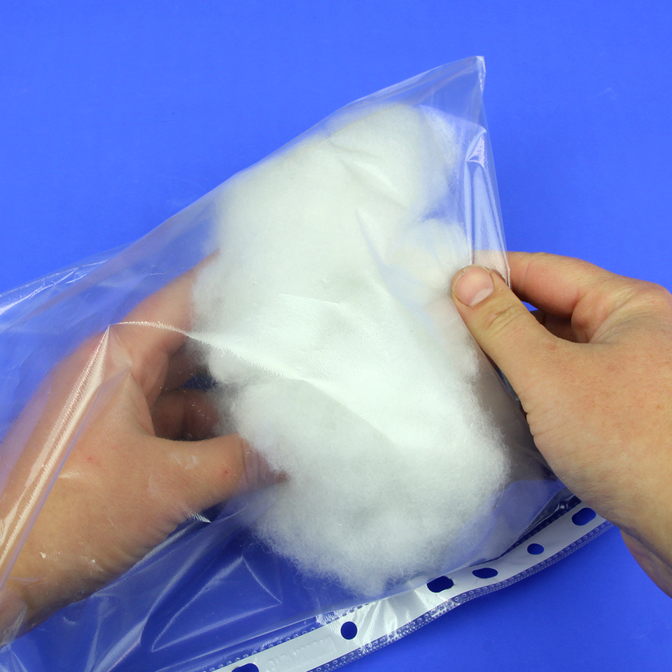 • Step 1Place 10g of wadding into a sheet protector and push to the bottom.