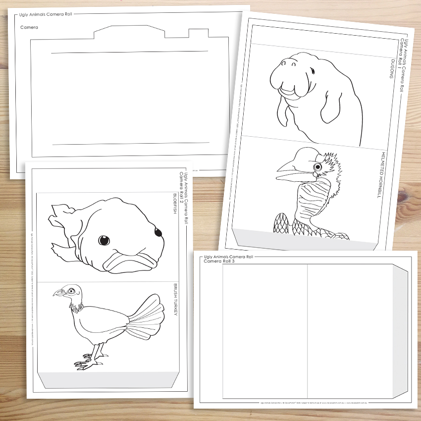 This activity is based on the book “The Illustrated Encyclopaedia of Ugly Animals” by Sami Bayly. Why is it only the pretty animals that get all the attention? Use our templates to create a fun camera roll of the not-so-cute animals of the world as you learn about them in the Encyclopaedia. We’ve included some animals to colour in and then use the blank template to draw your own versions!