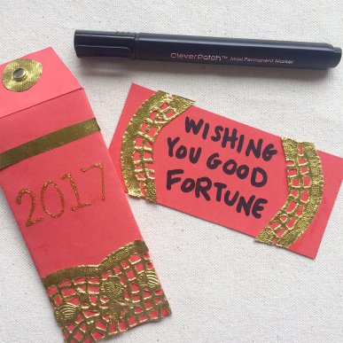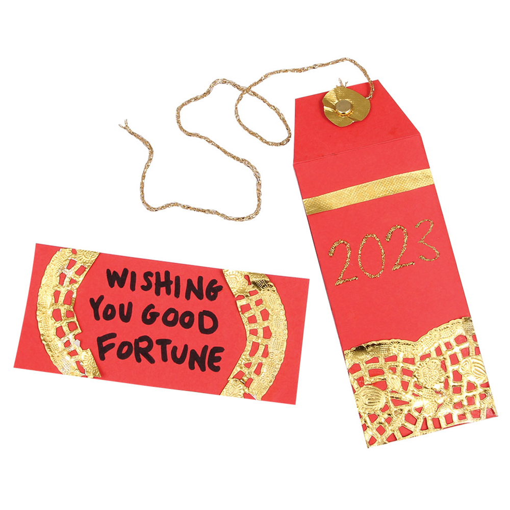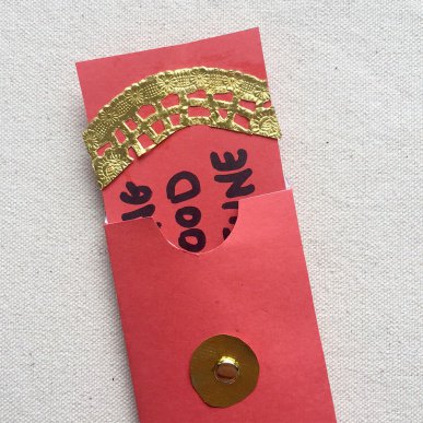Happy New Year! Red envelopes are gifts presented at Lunar New Year with the red colour of the envelope symbolising good luck. Money is commonly put inside the red envelopes however they may also contain best wishes from one person to another for the coming year.
