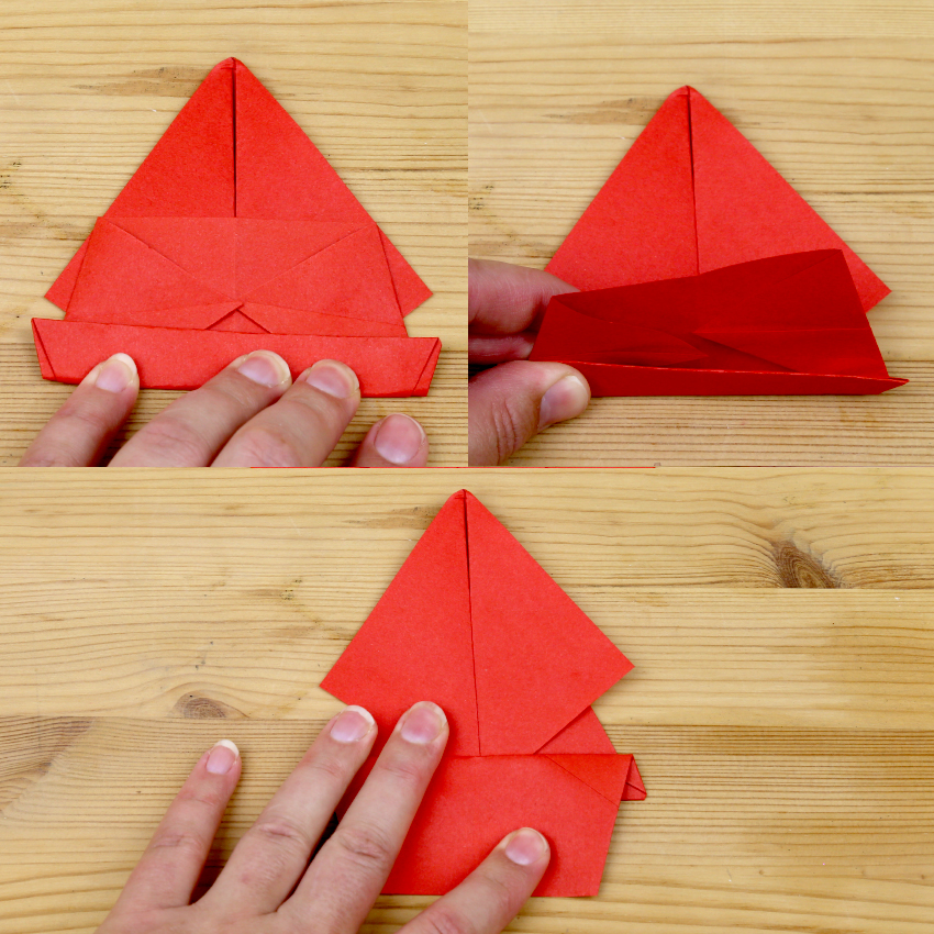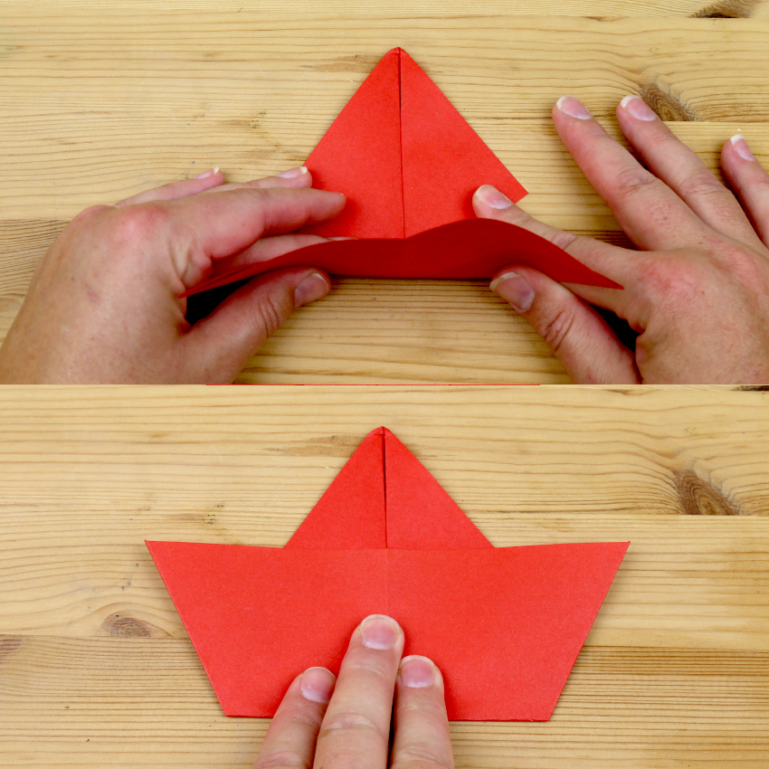 • Step 6Fold the bottom of the paper upwards, creasing it firmly at the base of the top diamond shape. The paper will now look like a boat.