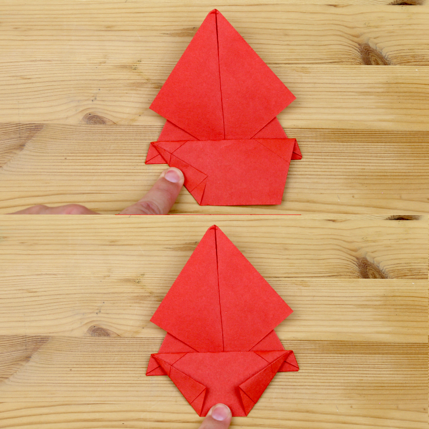 • Step 10Fold the bottom left point of the trapeze up and inwards to create a firm crease running from the top left point of the trapeze. Repeat on the right hand side.