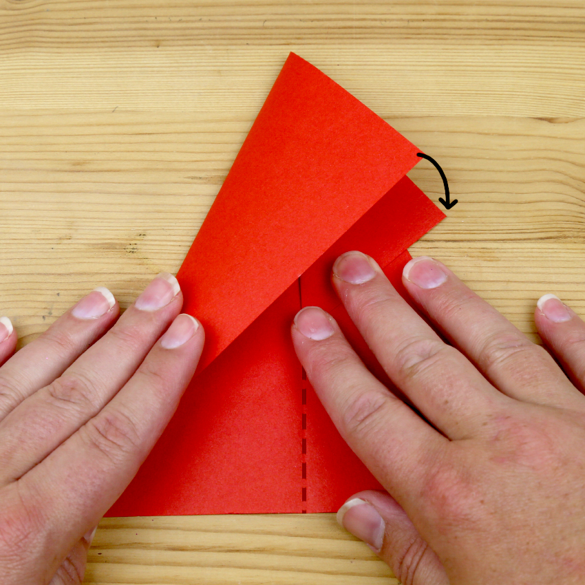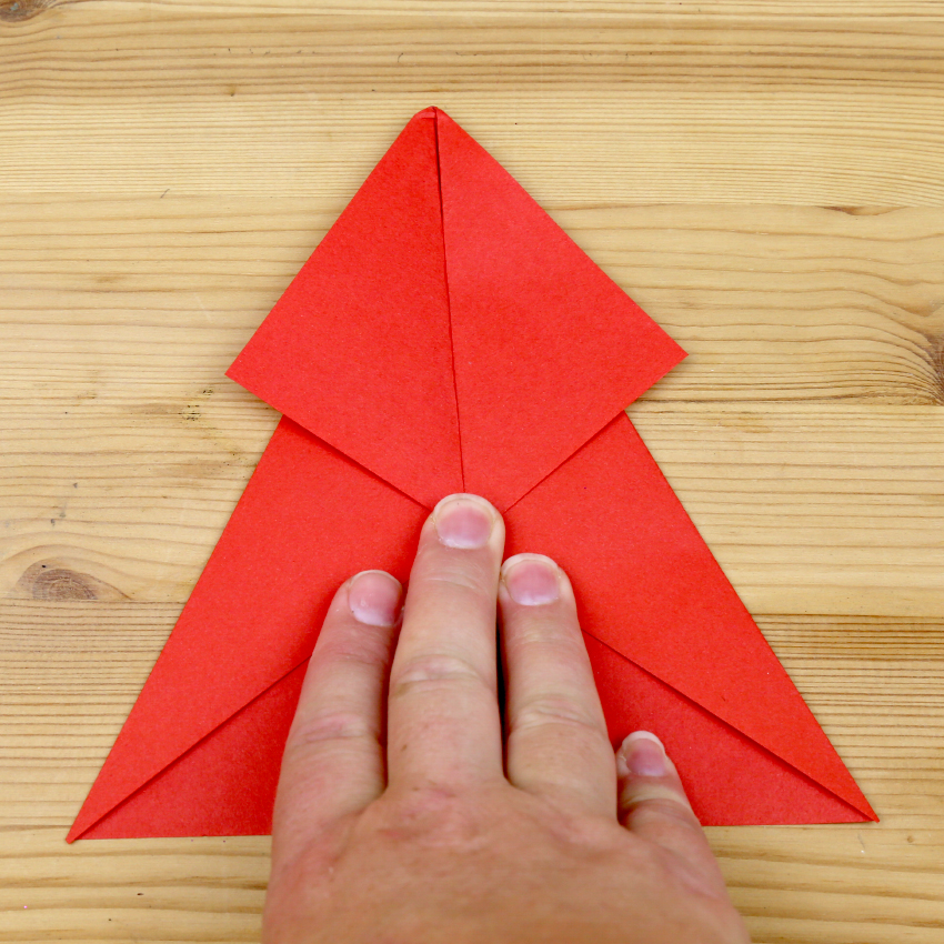 • Step 5Fold the top point back to the left, creasing firmly down the centre fold. You can now see a diamond shape sitting on top of a triangle shape.