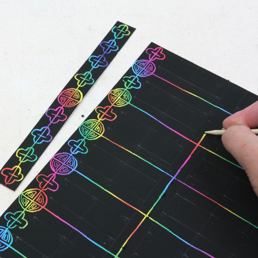 • Step 3Continue scratching until your design is completed - don’t forget to decorate the handle piece!
