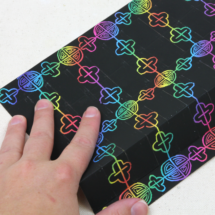 • Step 6Hold the large scratch board sheet at the short edges, bringing them around to meet each other and form the lantern.