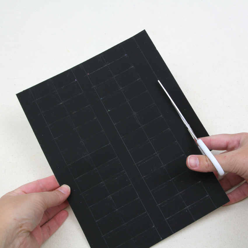 • Step 1You will notice a shorter strip along one of the long sides of the sheet of scratch board. This will be the handle of the lantern. Use scissors to cut this off. Adult supervision is recommended when using scissors.