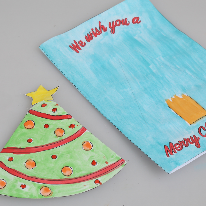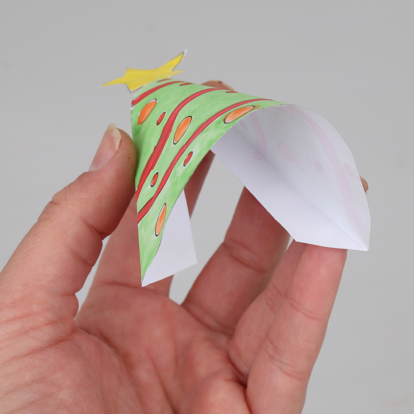 • Step 4Fold along the dotted lines. You will now have a card and a tree.
