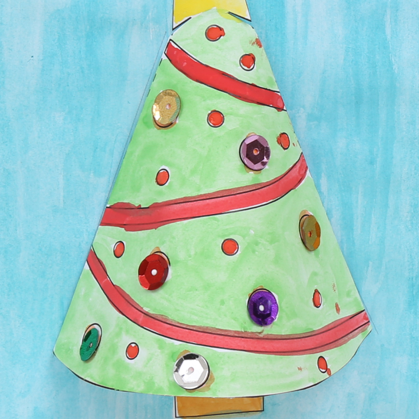 • Step 7Add a touch of sparkle to the tree to finish your card! Use PVA glue to stick sequins onto your tree and allow to dry.