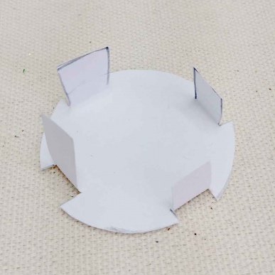 • Step 10Using the final template, cut out a base from white card. Fold up the tabs as demonstrated.