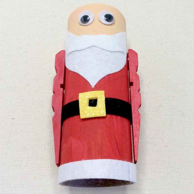 • Step 8Use glue dots to attach two peg segments to Santa’s sides as arms. Attach two wiggle eyes to his face.