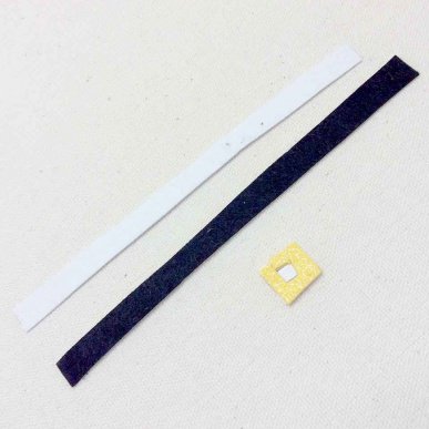 • Step 6Cut a black belt and white trimming from adhesive felt and a yellow belt buckle from glitter adhesive foam.