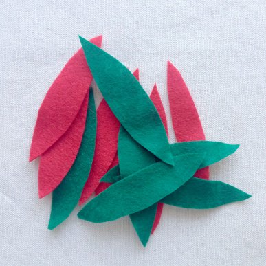 • Step 1Using the template provided, cut out 10 pieces from coloured felt. You may need more felt pieces, if so simply re-use the template to cut some more!