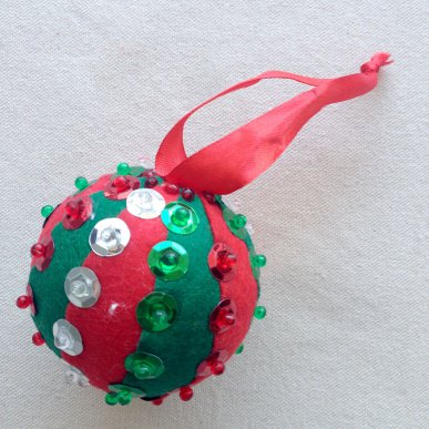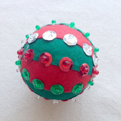 • Step 3Repeat this process until your decofoam ball is completely covered in the felt and sequined pins.