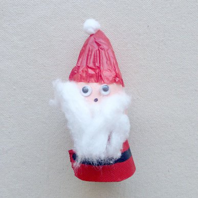 • Step 6Decorate your bobble head with cotton balls to create a beard and hair and create a hat by using a patty pan.Attach with glue. Stick on eyes and paint a smile. Allow to dry.