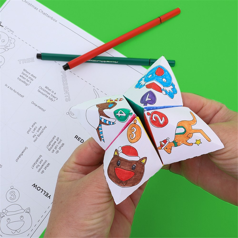 • Step 1Download and print the Christmas chatterbox template provided. Decorate the chatterbox using markers or pencils.