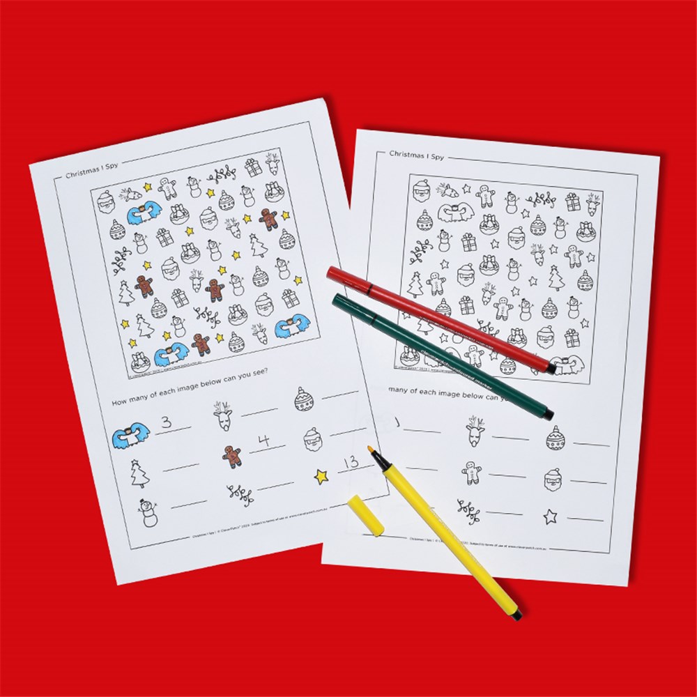 • Step 1Download and print out your Christmas I Spy Template. We recommend you print it on cover paper as this will provide a great surface for decorating.