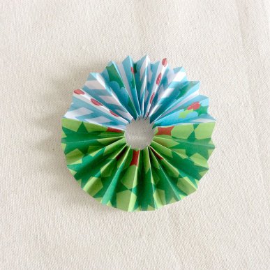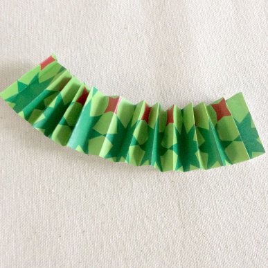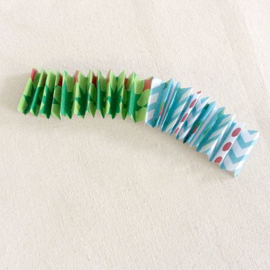 • Step 2Cut a strip of Christmas paper approximately 3cm x 30cm. Fold the length of the strip using an accordion fold.