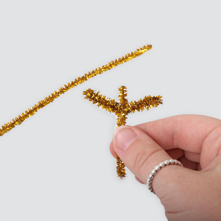 • Step 5Cut a gold chenille stem in half. Bend each half to create the Reindeer's antlers. Push each antler side by side into the top of the brown paper cup with the rubber bands.