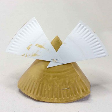 • Step 1Paint a paper plate gold. Once it is completely dry, cut out a one quarter section of the plate and then cut that quarter in half.