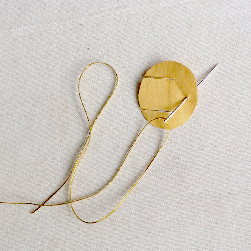 • Step 3 Once dry you can create a hanger to hang it on the tree. Choose one of the middle pieces and thread some gold yarn through the top using a needle. Tie the ends together to create a loop.