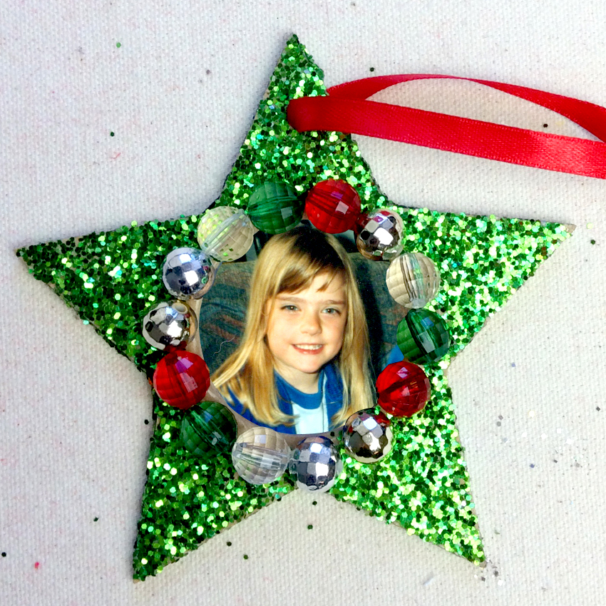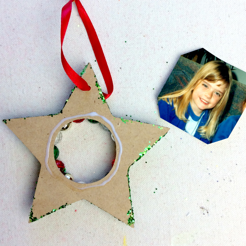 Dazzle your loved ones this Christmas with a sparkly, festive frame! Decorate, add in your photo and hang your new ornament on your tree for all to see!