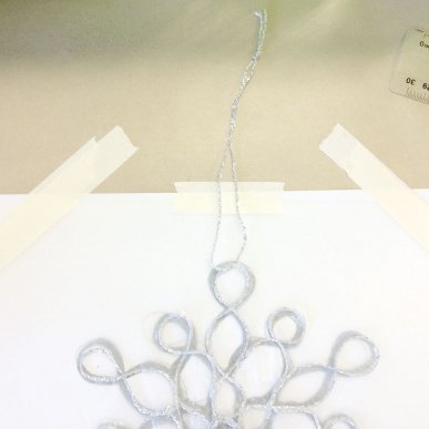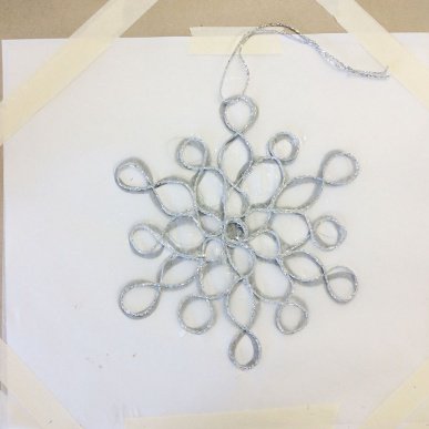 • Step 16Leave the snowflake to completely dry and then slowly and carefully peel it off the wax paper. Your beautiful snowflake is ready to hang!