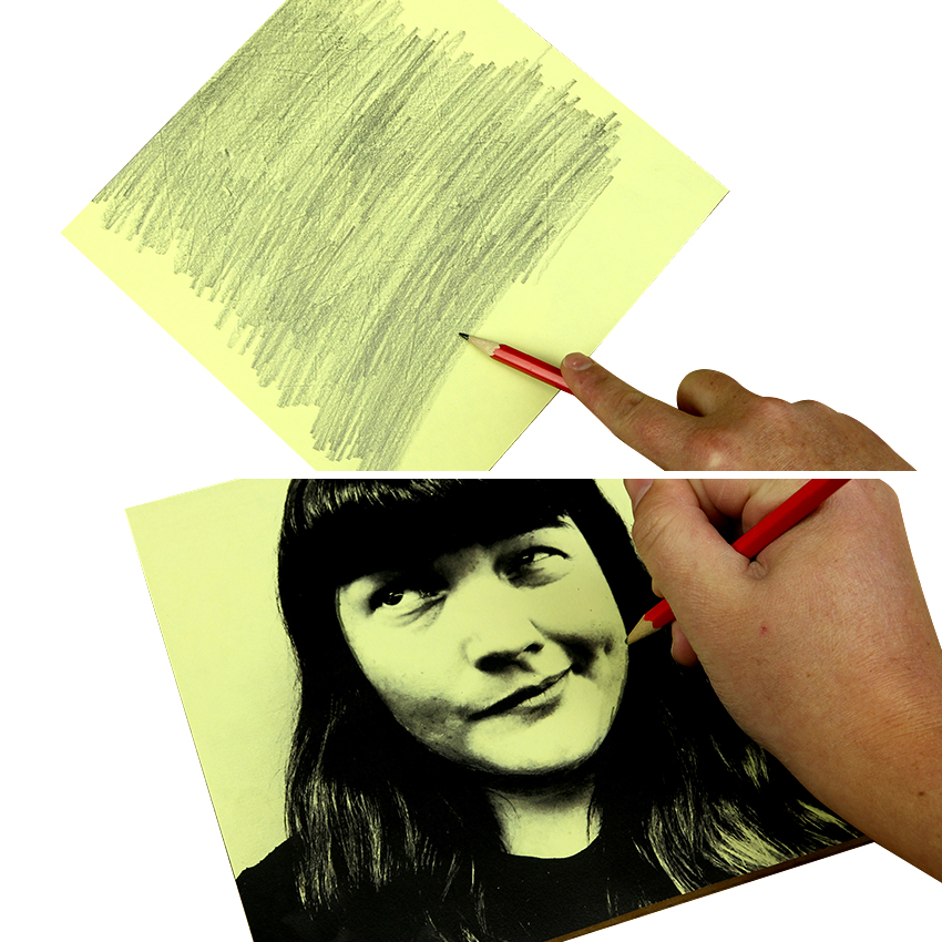 • Step 2Flip your photo over and cover the back in pencil. Turn your photo back over and place over the front of your wooden art panel. Use a pencil to trace over the lines of your photo, pressing firmly as you go to transfer the image onto the wood below. Be sure to trace around the different sections of light and dark.