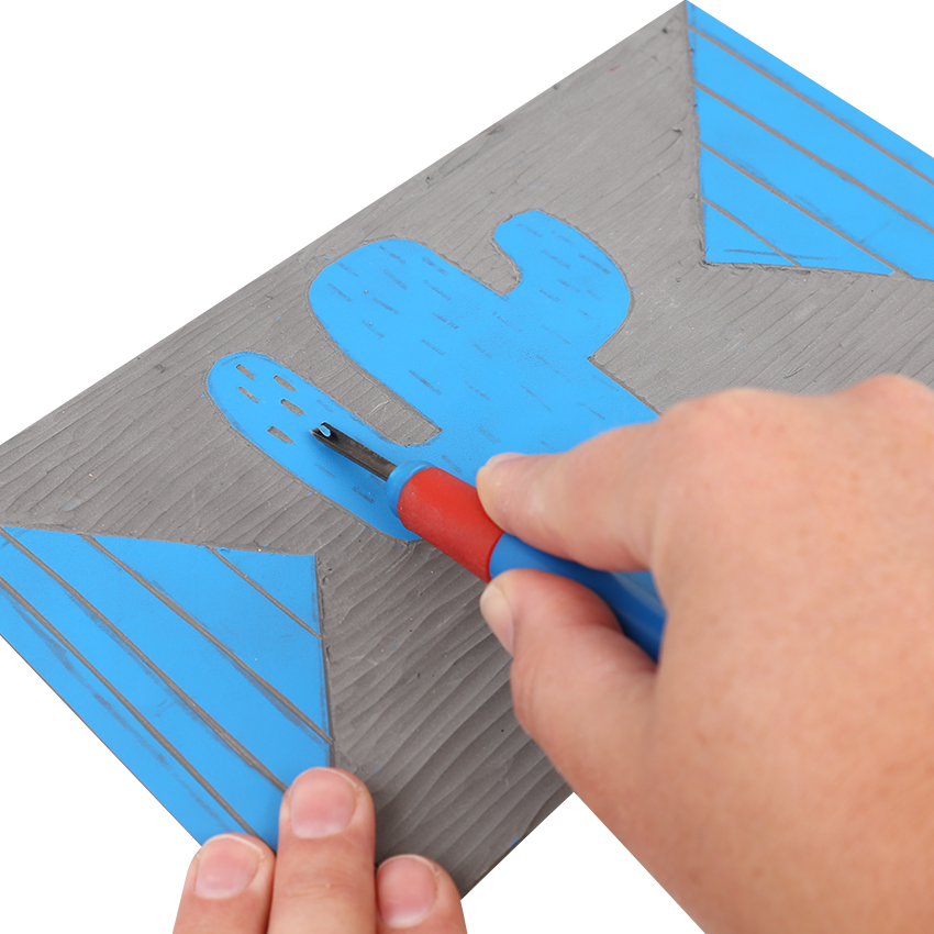 • Step 5To finish the Lino Print, use the small ‘v’ tool to carve out any smaller details in your design.