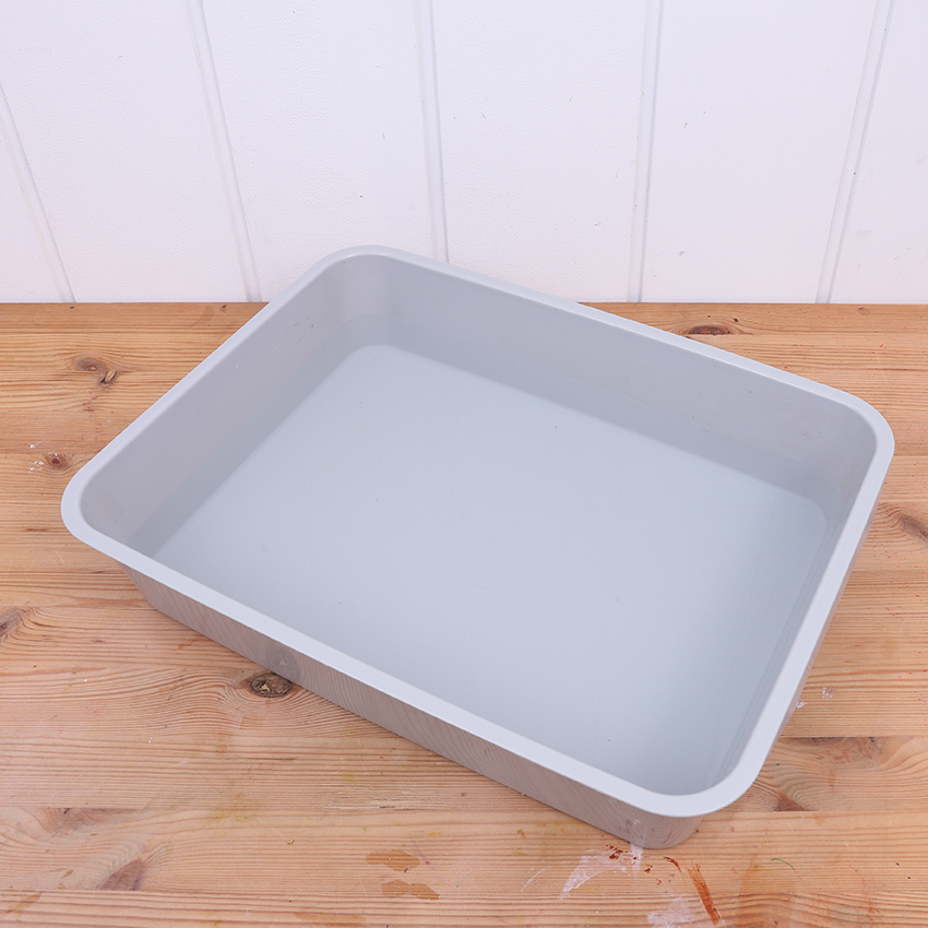 • Step 1Set up your space ready for marbling. You may need to put down a splash mat or table cover to protect your work surface. We are using a tray and have filled it halfway with cold water. Depending on what you have at home, you may wish to use a large bowl or a bucket.