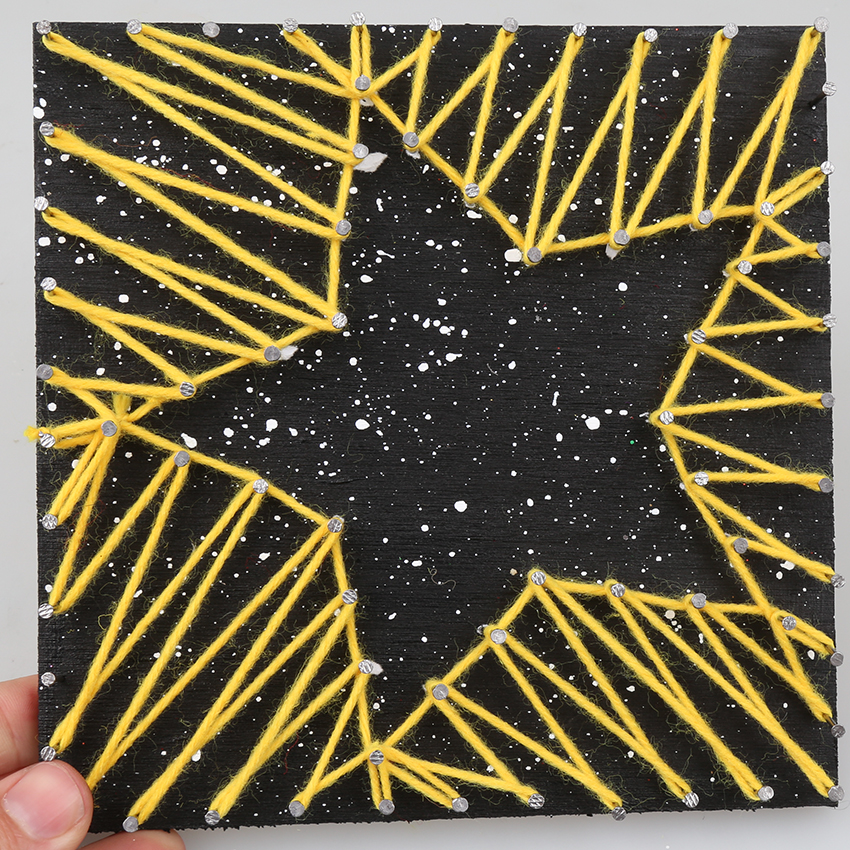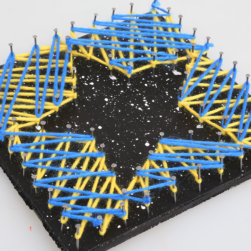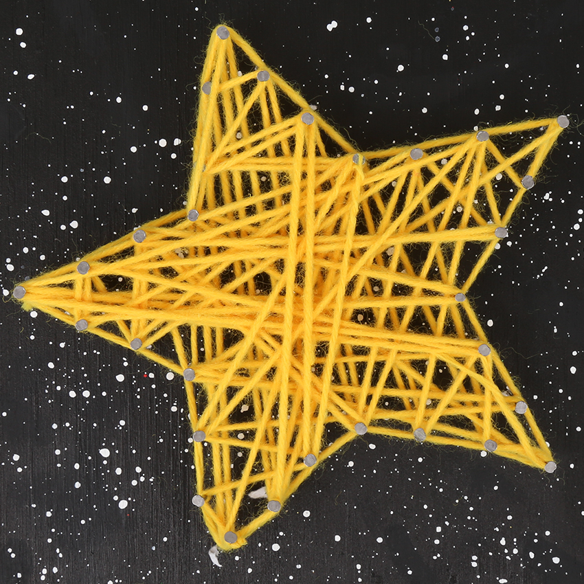 • Step 6Once the outline is strung, randomly cross the wool across the star, filling in the shape. Tie off the wool once you are happy with the design and trim any excess. You may even wish to add in a second colour of wool to the design!