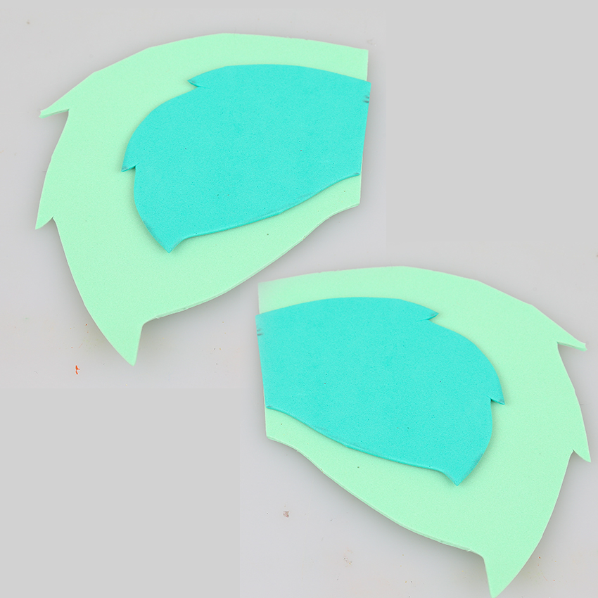 • Step 7Cut out 2 of these ear shapes, then use a different coloured foam to create 2 smaller inner ear shapes. Secure together using glue dots.