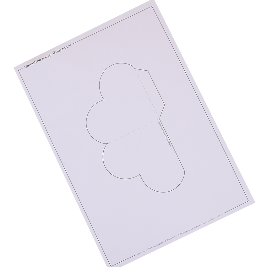 • Step 6Add some glue along the tab on the side of the template. Fold the template in half along the dashed line, tucking the glued tab into place inside. Allow to dry and your Heart Bookmark is now ready to use or gift!