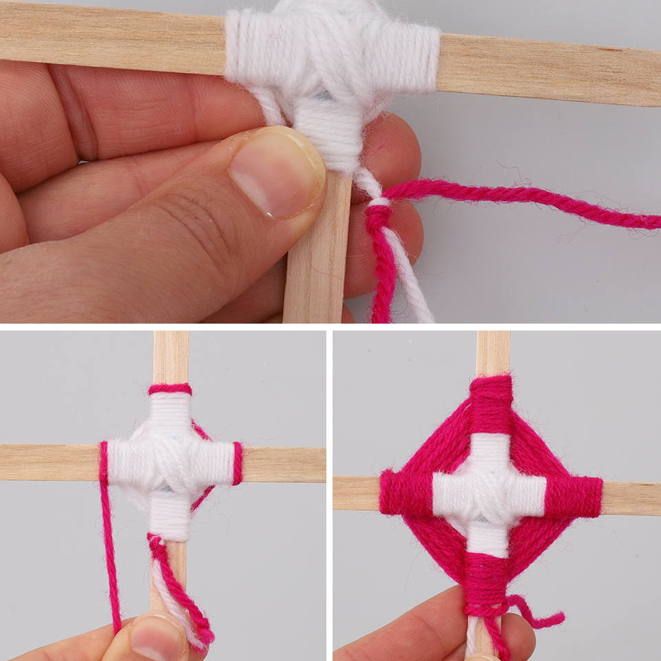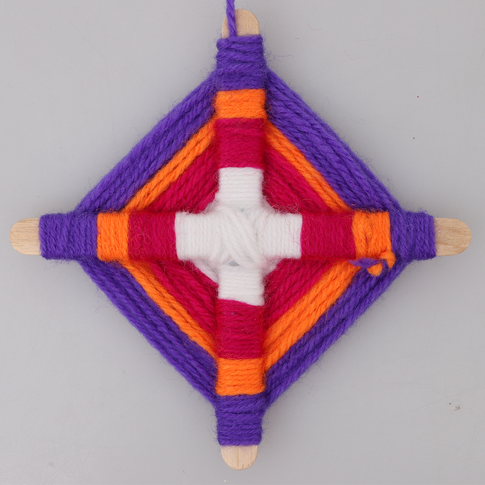 Use brightly coloured yarn and popsticks to create your own Ojo De Dios (Oh-Ho-Day-Dee-Ohs). This is a great holiday craft that encourages learning while also creating a beautiful project! Do some research before you begin to learn about this Native American craft created by the Huichol (wet-chol) people who lived in the Sierra Madre mountains of Mexico.