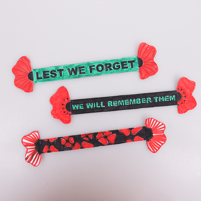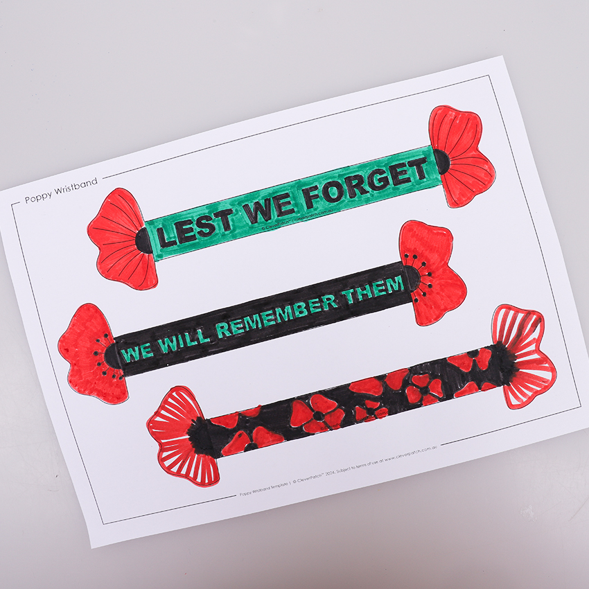 ANZAC Day is commemorated on the 25th of April every year. These Poppy Wristbands are a nice way for children to show respect for those who served and can be easily decorated then worn.