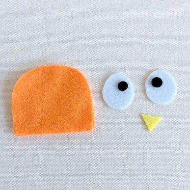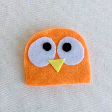 • Step 3Use fabric glue to attach the eyes and beak to one of the semi circles.