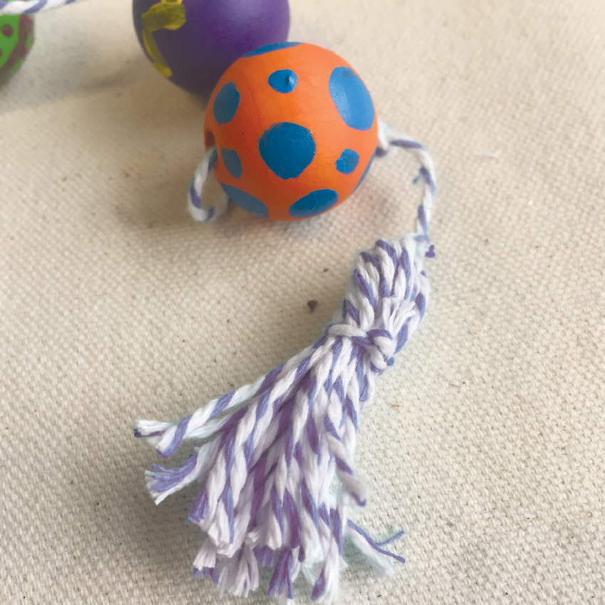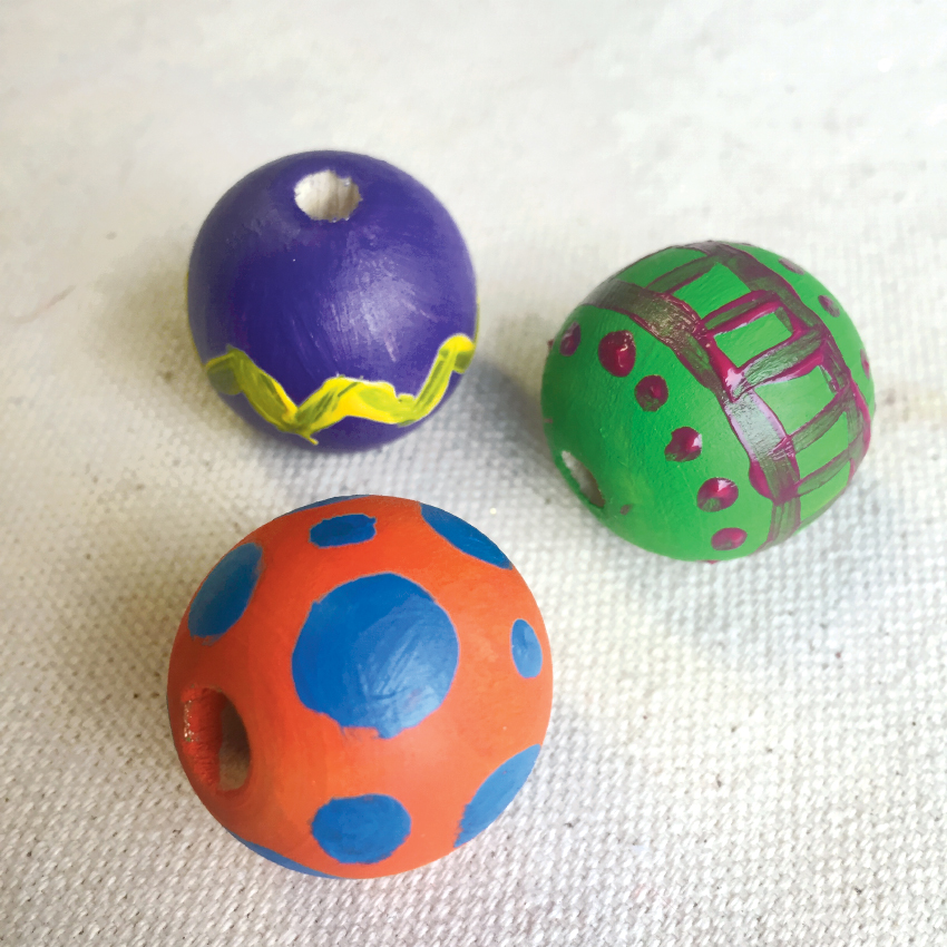 • Step 4 Use the bright paints to decorate the natural beads with pretty patterns.