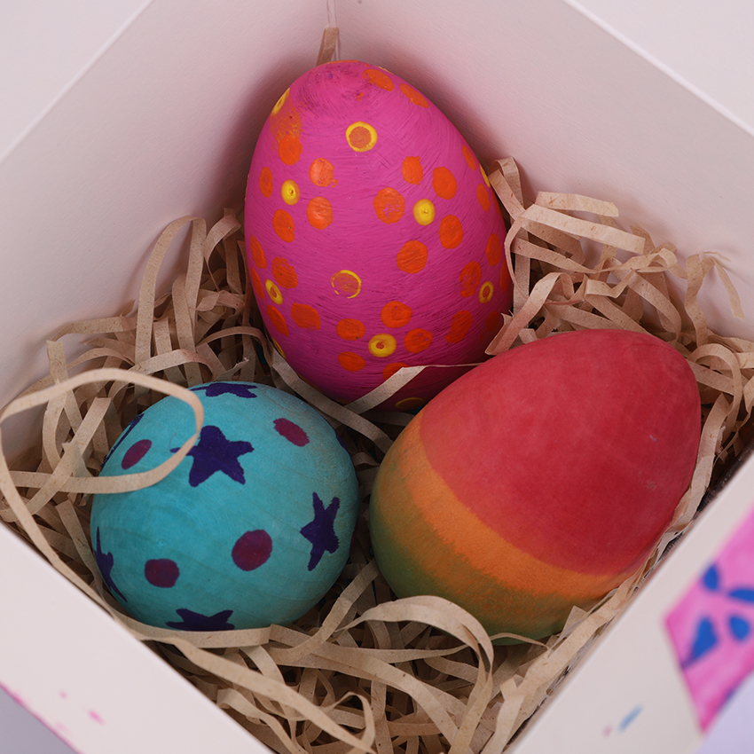 • Step 7Add some shredded paper and a gift to your box. We have chosen to gift some dyed wooden eggs!