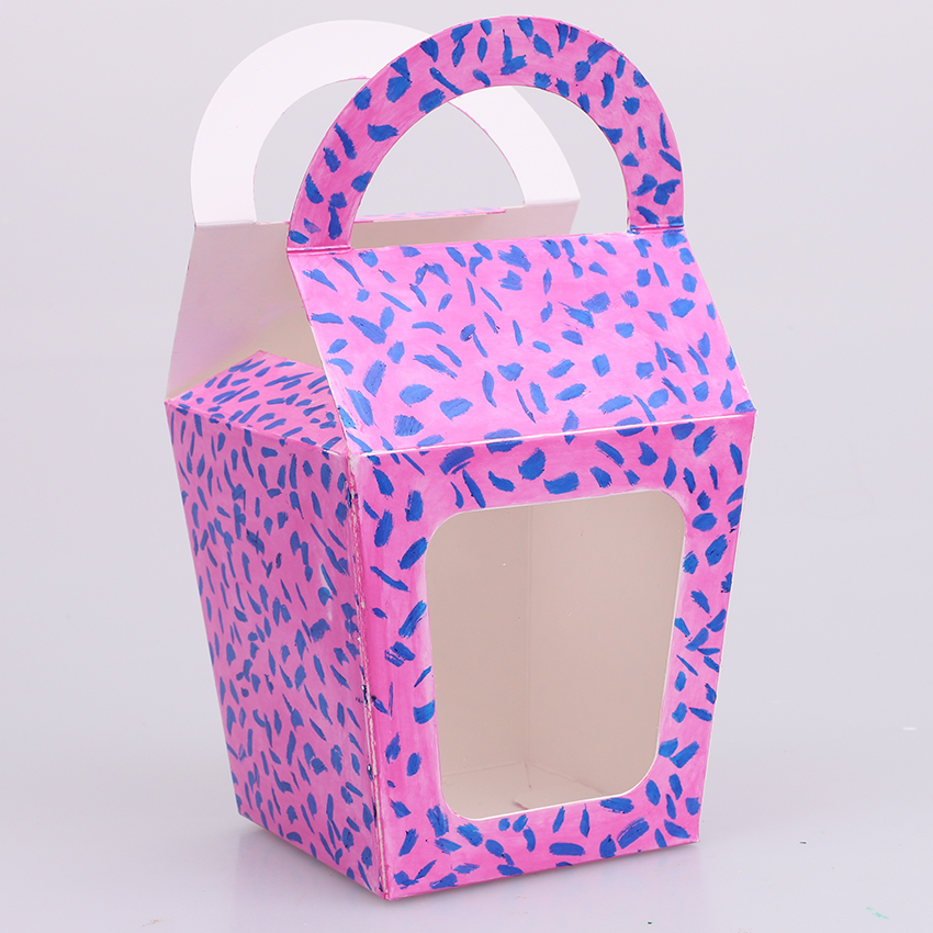 • Step 1While the gift box is flat, decorate using your favourite craft materials. We have chosen to use poster paint sticks. Allow to dry if needed.