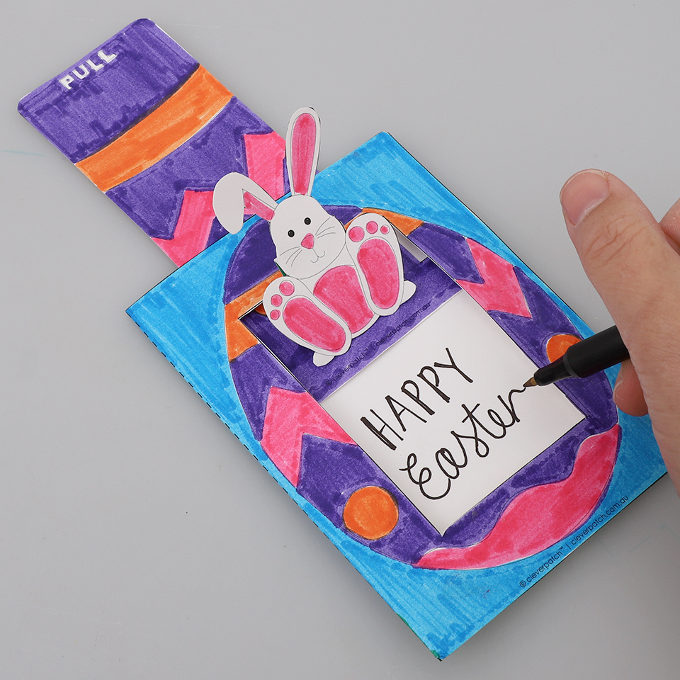 • Step 8Pull the slider upwards to reveal the white inside the card. This is where you can write your secret Easter message!