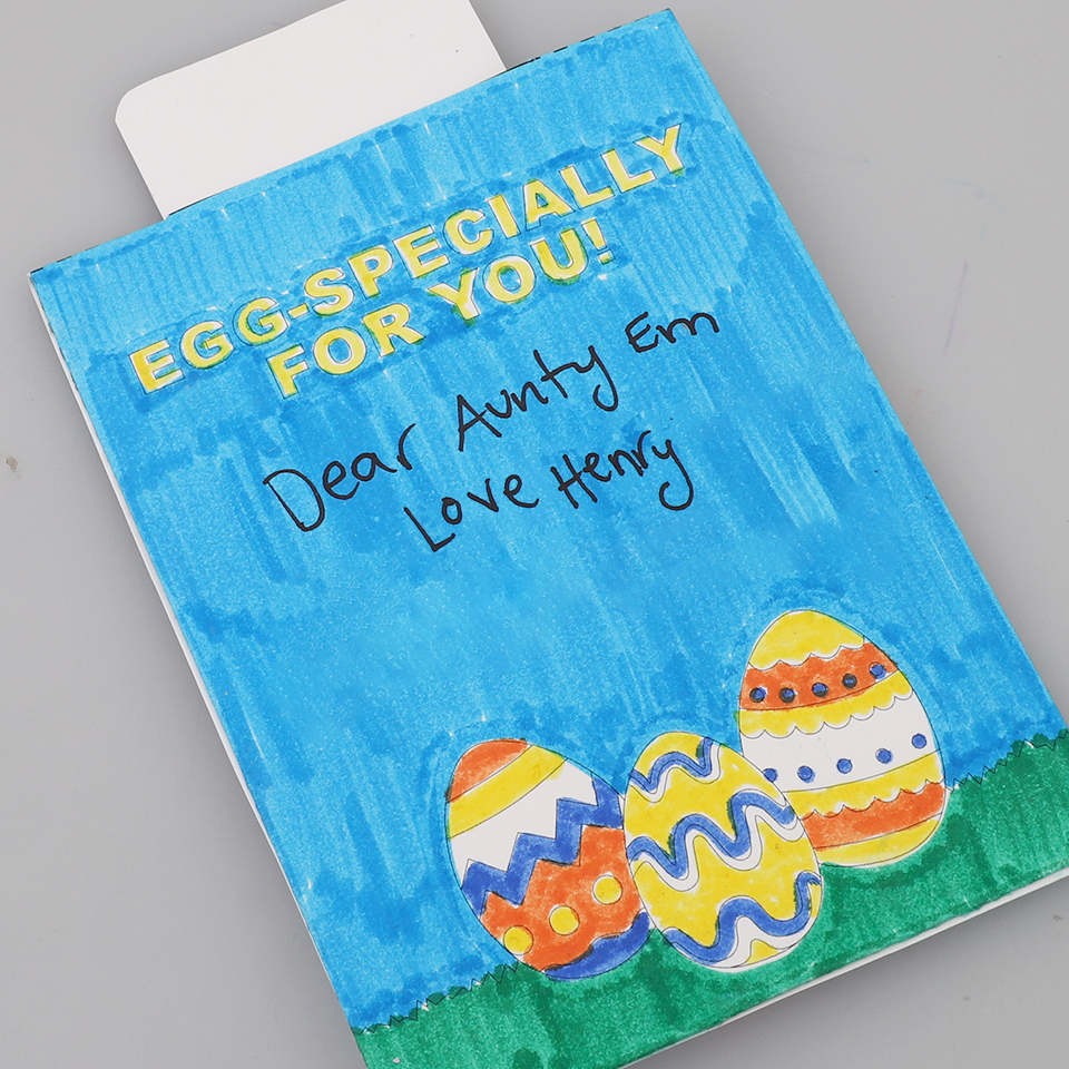 Create an eggs-tra special Easter card, complete with a secret message! Download and print our FREE template then follow the steps below to construct.