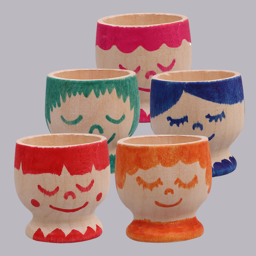 • Step 2Decorate the wooden egg cups using permanent markers. We have chosen to draw some cute characters on ours!